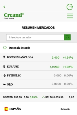 With Creand Crèdit Andorrà's free downloadable app you can access online banking and carry out your usual operations easily, comfortably, and securely.