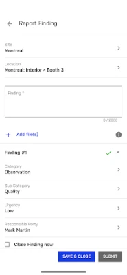 With the EASE mobile app, you can conduct audits directly on your mobile device even without an internet connection. Key features and functionalities include:
