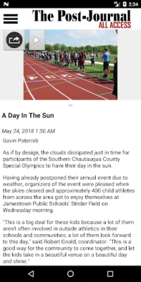 Stay on top of news from Jamestown and surrounding areas by receiving the full print version of The Post-Journal on your Android device. Every page of every edition is delivered to your device. The Post-Journal is the best source for local and national news, sports, weather, and features in the Jamestown and Chautauqua County area. Download the app to view the printed pages of the newspaper or read headlines and stories along with related photos in a built-in story viewer.