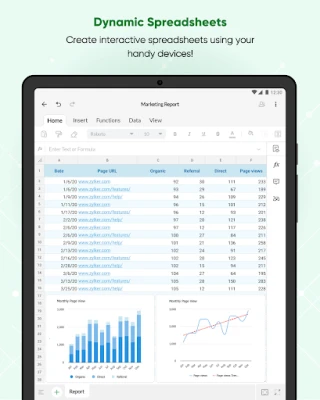 Create, edit, share, and collaborate on your spreadsheets using the Zoho Sheet app for Android devices—smartphones and tablets—for free. Also, open files in your device without having to sign up or sign in and start working from where you left, from anywhere, any time.